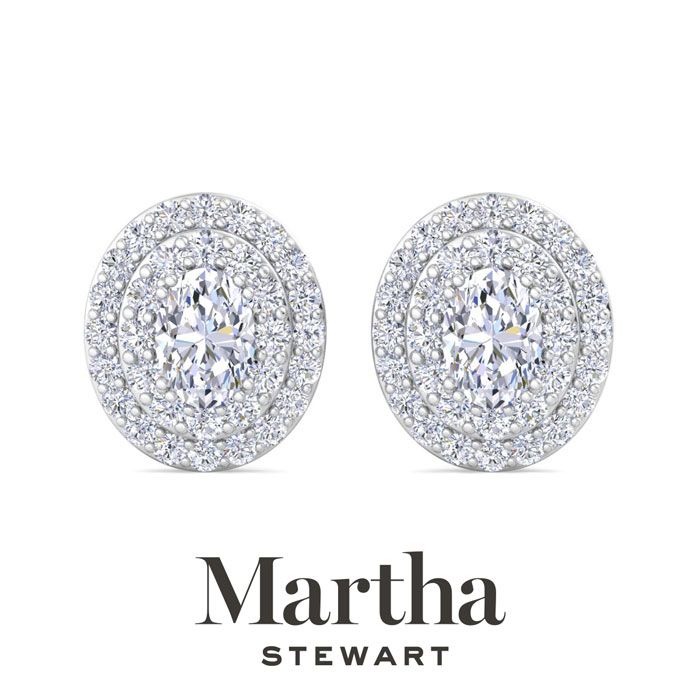 Martha Stewart 4 Carat Oval Shape Lab Grown Diamond Halo Stud Earrings In 14 Karat White Gold
