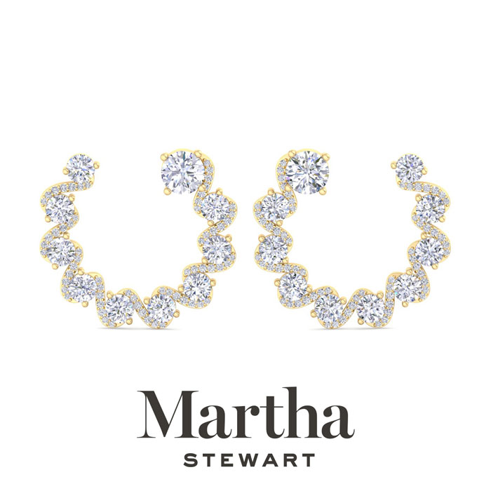 Showcasing class, style and timeless sophistication, the Martha Stewart fine jewelry collection is here to be celebrated. These Martha Stewart lab grown diamond earrings feature 146 round lab grown diamonds in G-H color, VS clarity. Total carat weight is 5 carats. These earrings are in 14 karat yellow gold and have post with screw backs. These earrings are 1 inch in diameter! Whether worn for a special event or to enhance everyday elegance, these earrings are sure to become cherished heirlooms. Martha Stewart’s attention to detail and dedication to quality shine through in every piece, making this collection a celebration of refined craftsmanship and timeless beauty.