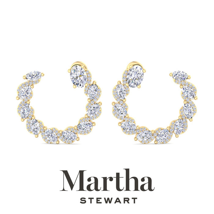 Showcasing class, style and timeless sophistication, the Martha Stewart fine jewelry collection is here to be celebrated. These Martha Stewart lab grown diamond earrings feature 146 oval and round lab grown diamonds in G-H color, VS clarity. Total carat weight is 5 carats. These earrings are in 14 karat yellow gold and have post with screw backs. These earrings are 1 inch in diameter! Whether worn for a special event or to enhance everyday elegance, these earrings are sure to become cherished heirlooms. Martha Stewart’s attention to detail and dedication to quality shine through in every piece, making this collection a celebration of refined craftsmanship and timeless beauty.