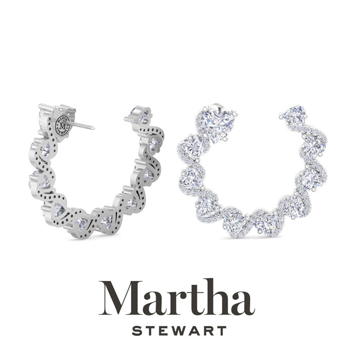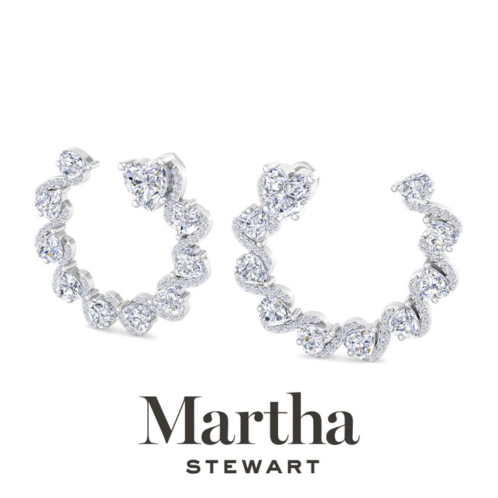 Showcasing class, style and timeless sophistication, the Martha Stewart fine jewelry collection is here to be celebrated. These Martha Stewart lab grown diamond earrings feature 146 heart and round lab grown diamonds in G-H color, VS clarity. Total carat weight is 5 carats. These earrings are in 14 karat white gold and have post with screw backs. These earrings are 1 inch in diameter! Whether worn for a special event or to enhance everyday elegance, these earrings are sure to become cherished heirlooms. Martha Stewart’s attention to detail and dedication to quality shine through in every piece, making this collection a celebration of refined craftsmanship and timeless beauty.