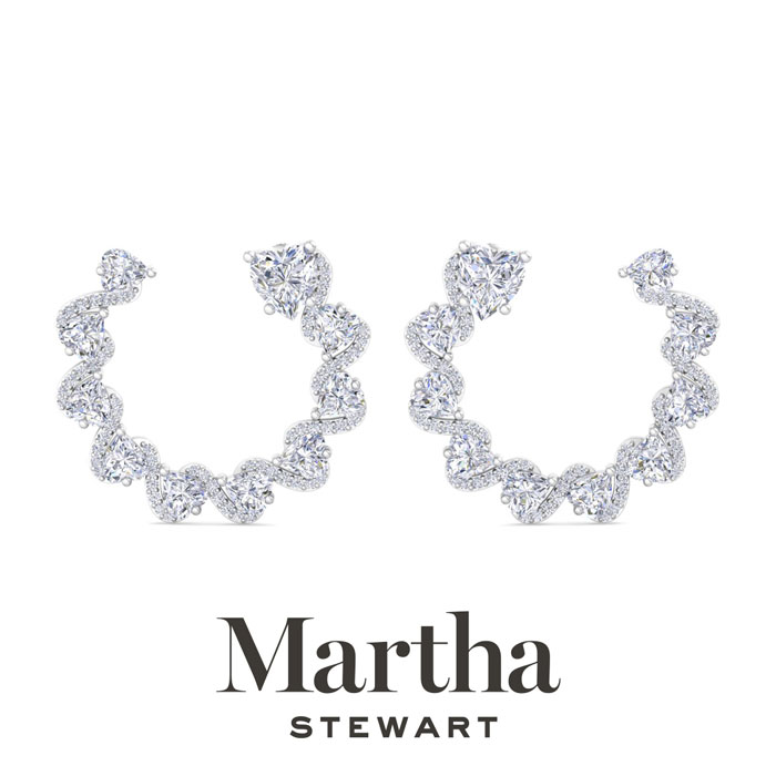 Showcasing class, style and timeless sophistication, the Martha Stewart fine jewelry collection is here to be celebrated. These Martha Stewart lab grown diamond earrings feature 146 heart and round lab grown diamonds in G-H color, VS clarity. Total carat weight is 5 carats. These earrings are in Sterling Silver and have post with screw backs. These earrings are 1 inch in diameter! Whether worn for a special event or to enhance everyday elegance, these earrings are sure to become cherished heirlooms. Martha Stewart’s attention to detail and dedication to quality shine through in every piece, making this collection a celebration of refined craftsmanship and timeless beauty.
