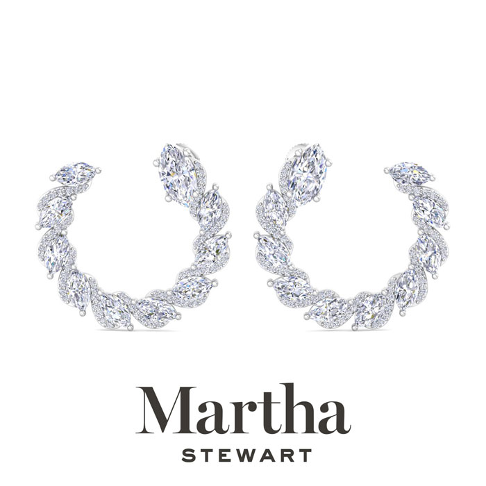 Showcasing class, style and timeless sophistication, the Martha Stewart fine jewelry collection is here to be celebrated. These Martha Stewart lab grown diamond earrings feature 146 marquise and round lab grown diamonds in G-H color, VS clarity. Total carat weight is 5 carats. These earrings are in Sterling Silver and have post with screw backs. These earrings are 1 inch in diameter! Whether worn for a special event or to enhance everyday elegance, these earrings are sure to become cherished heirlooms. Martha Stewart’s attention to detail and dedication to quality shine through in every piece, making this collection a celebration of refined craftsmanship and timeless beauty.