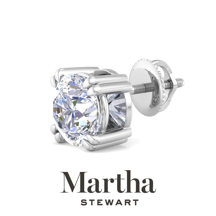 Showcasing class, style and timeless sophistication, the Martha Stewart fine jewelry collection is here to be celebrated. These Martha Stewart lab grown diamond earrings feature two 4 carat lab grown diamonds in G-H color, VS clarity. Total carat weight is 8 carats. These earrings are in Sterling Silver and are in a basket setting with screwbacks. These earrings are set in the signature Martha Stewart double-prong setting. Whether worn for a special event or to enhance everyday elegance, these earrings are sure to become cherished heirlooms. Martha Stewart’s attention to detail and dedication to quality shine through in every piece, making this collection a celebration of refined craftsmanship and timeless beauty.