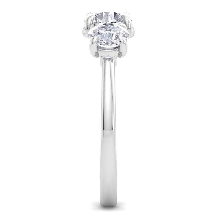This lab grown diamond engagement ring features one 1 carat center lab grown diamond in G-H color, VS clarity. It is surrounded by two 1/2 carat lab grown diamonds totaling 1 carat. Total carat weight is 2 carats. This ring is in sterling silver.