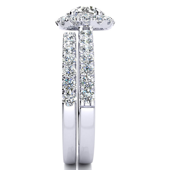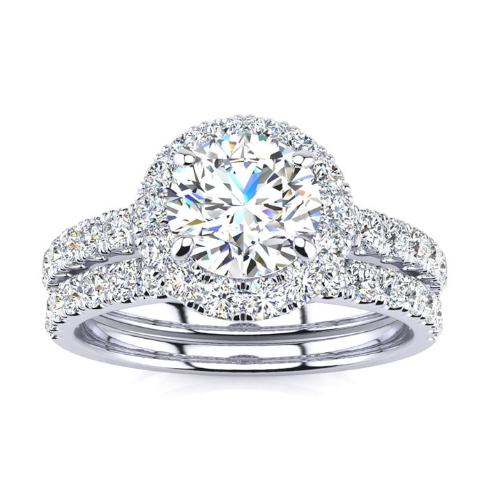2 Carat Round Lab Grown Diamond Halo Bridal Set In 14 Karat White Gold