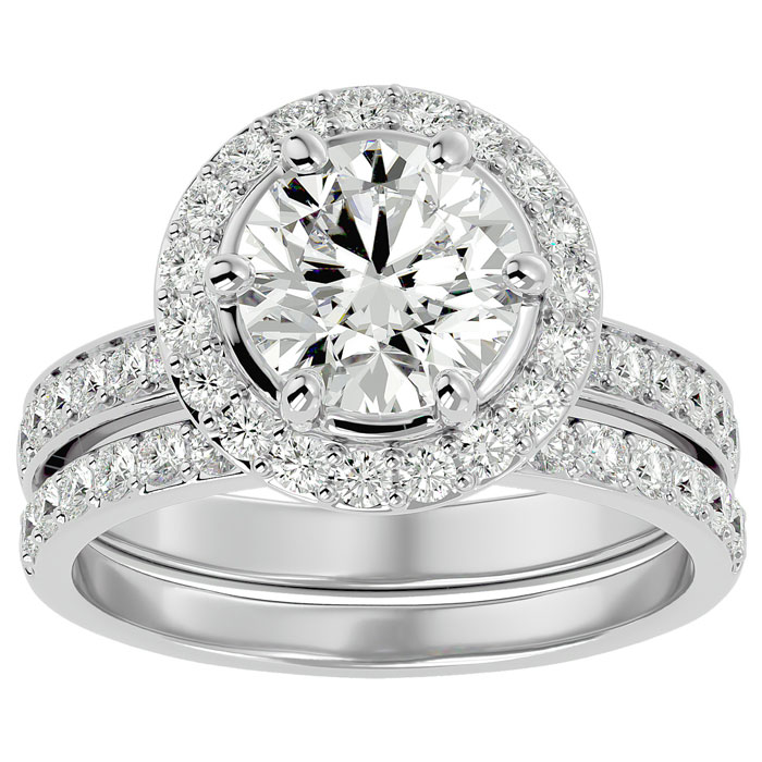 3 Carat Halo Lab Grown Diamond Bridal Set In Sterling Silver