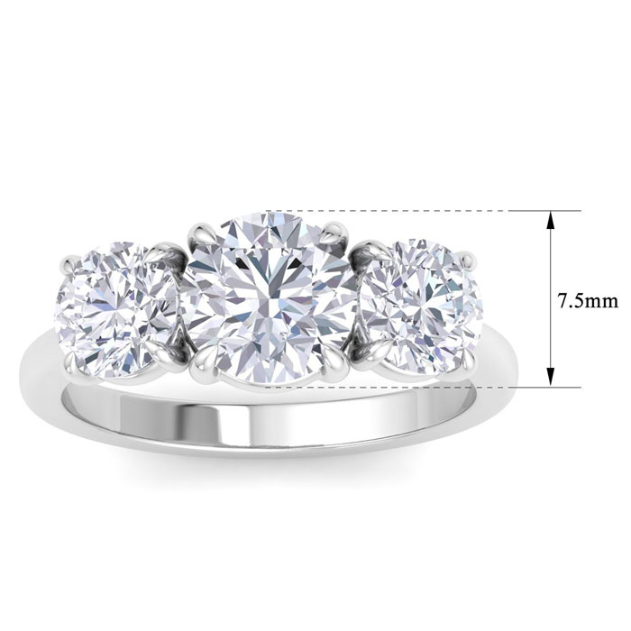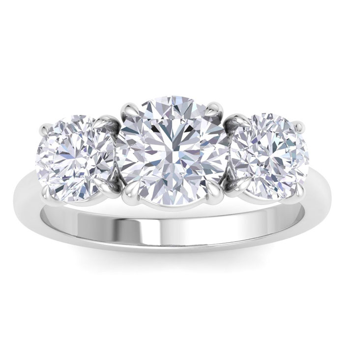 3 Carat Lab Grown Diamond Three Stone Engagement Ring In Sterling Silver
