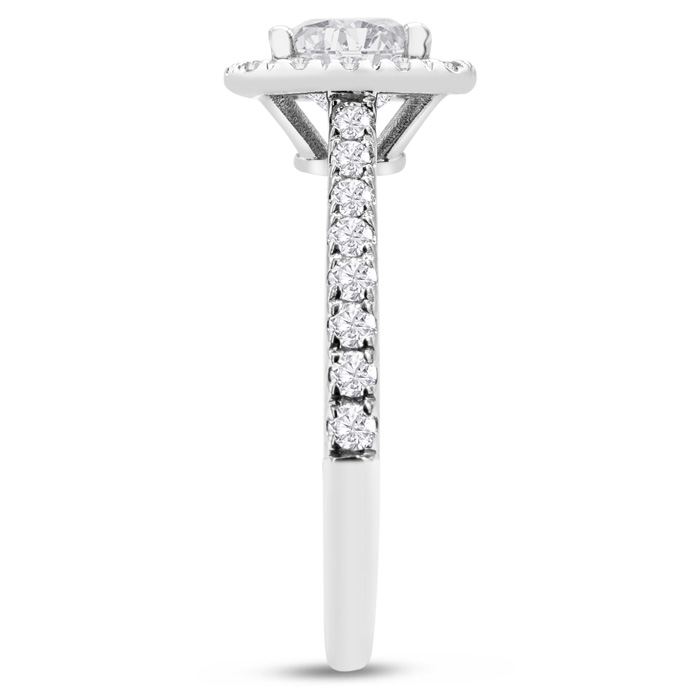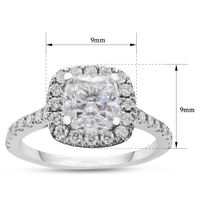 1 1/2 Carat Cushion Cut Lab Grown Diamond Halo Engagement Ring In 14K White Gold