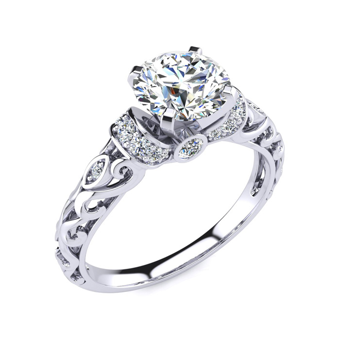 1 1/4 Carat Vintage Lab Grown Diamond Engagement Ring In 14 Karat White Gold