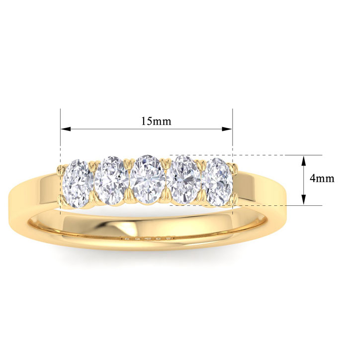 1/2 Carat Oval Shape Lab Grown Diamond Five Stone Engagement Ring In 14K Yellow Gold