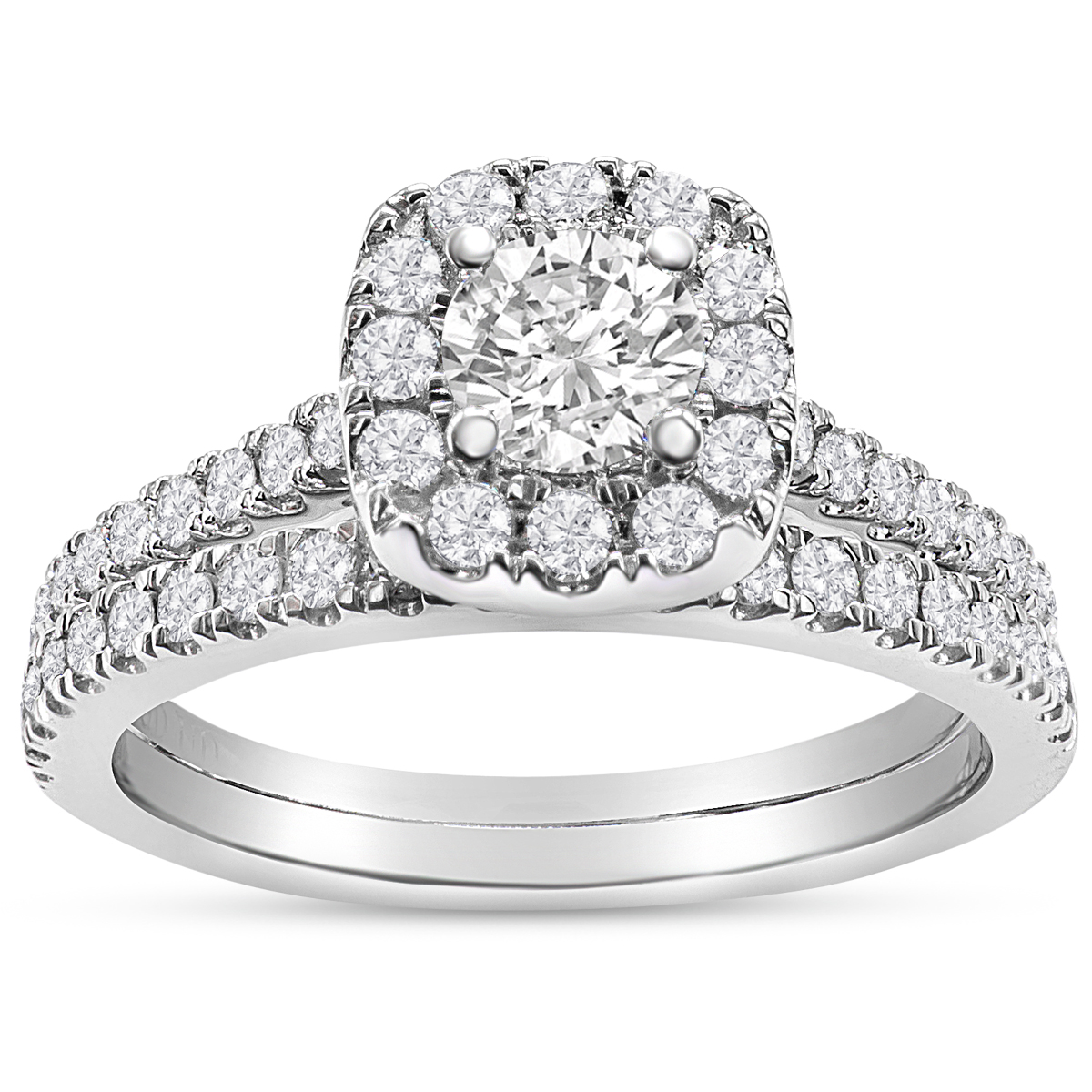 1.40 Carat Lab Grown Halo Diamond Bridal Set In 14K White Gold. Incredible Closeout Deal!