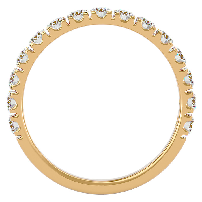 This fabulous lab grown diamond wedding band features 15 sparkling lab grown diamonds in G-H color, VS clarity totaling approximately 1 carat. This ring is in 14 karat yellow gold.