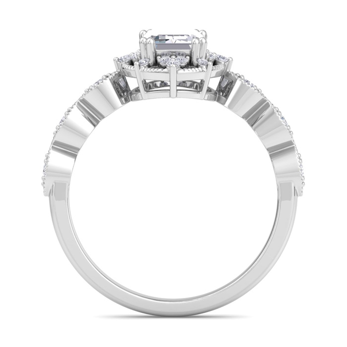 1 Carat Octagon Shape Halo Lab Grown Diamond Engagement Ring In 14K White Gold