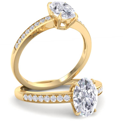 1 Carat Oval Shape Lab Grown Diamond Engagement Ring In 14K Yellow Gold