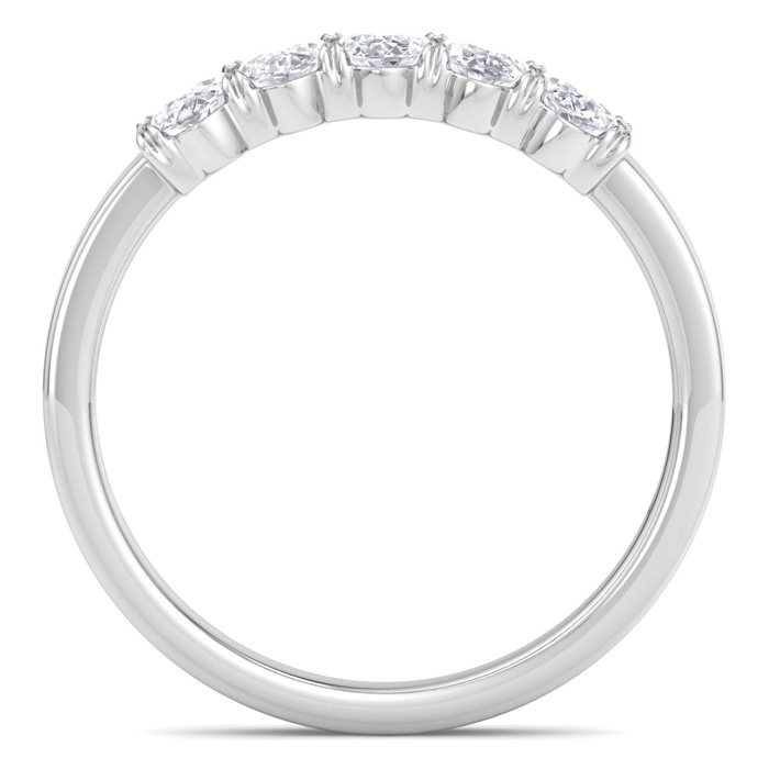 This lab grown diamond engagement ring features five oval shape lab grown diamonds in G-H color, VS clarity. Total carat weight is approximately 1 carat. This ring is in 14 karat white gold.
