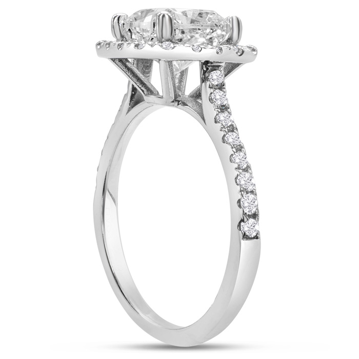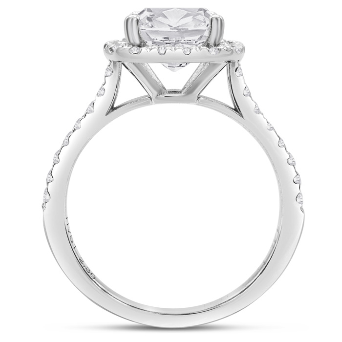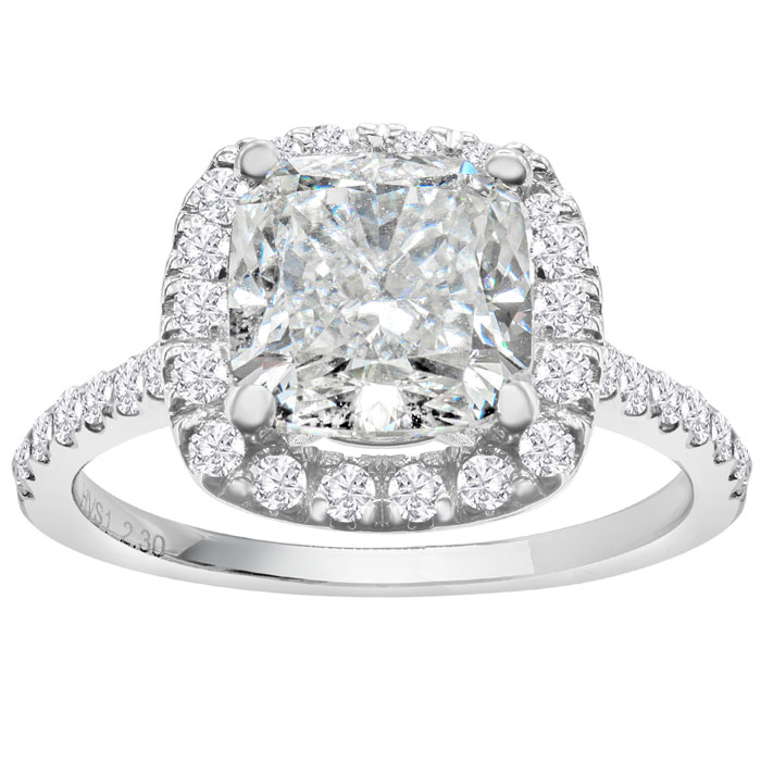 2 1/2 Carat Cushion Cut Lab Grown Diamond Halo Engagement Ring In 14K White Gold