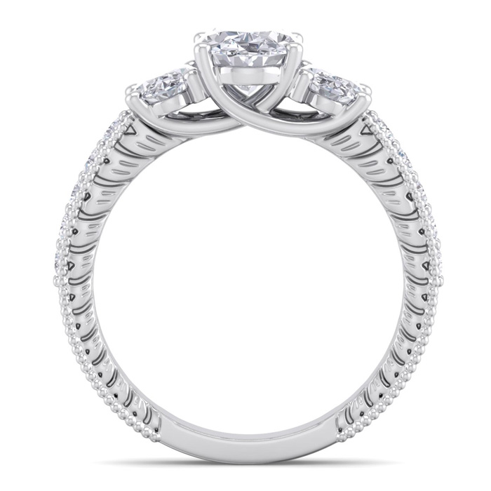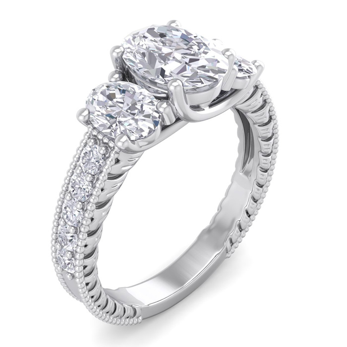 2 1/2 Carat Lab grown Diamond Oval Shape Three Stone Ring In 14 Karat White Gold