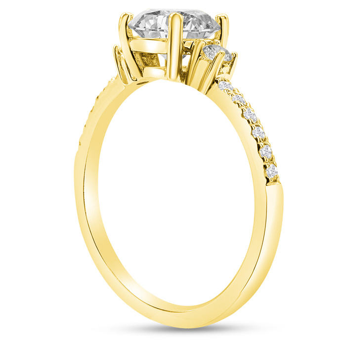 2 1/3 Carat Three Diamond Plus Engagement Ring In 14K Yellow Gold