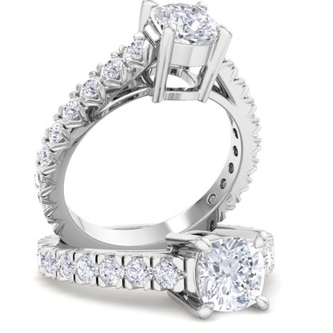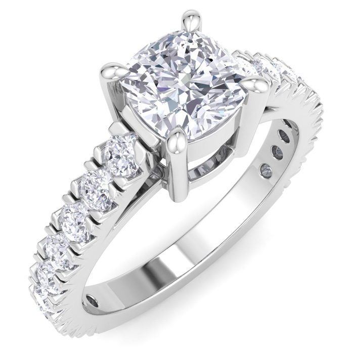 2 Carat Cushion Cut Lab Grown Diamond Classic Engagement Ring In 14K White Gold