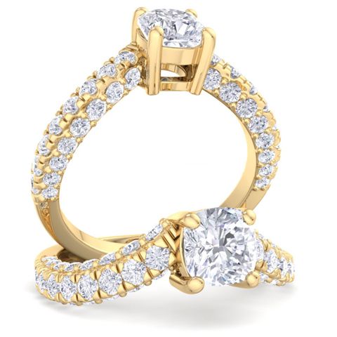 2 Carat Cushion Cut Lab Grown Diamond Curved Engagement Ring In 14K Yellow Gold