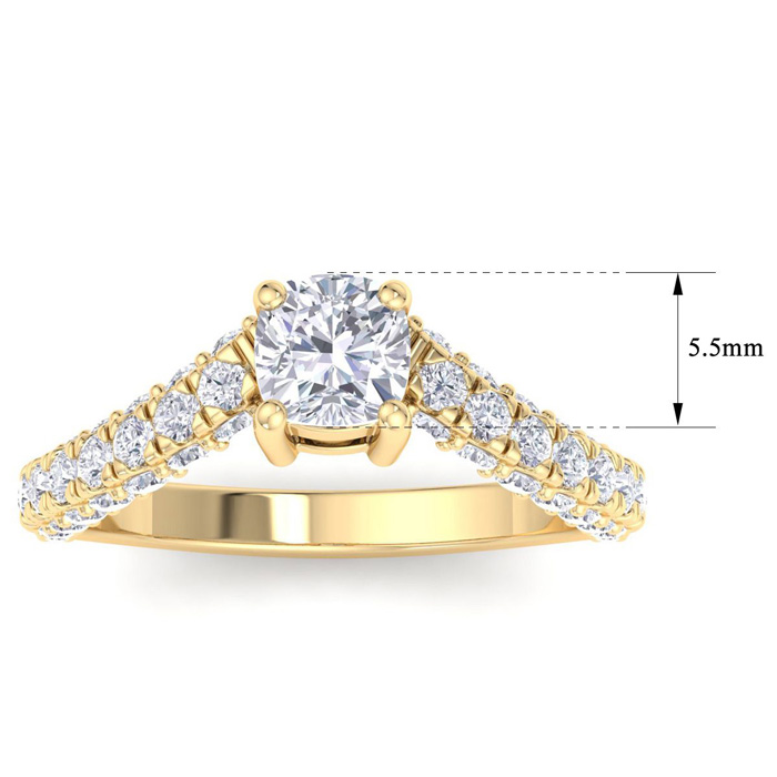 2 Carat Cushion Cut Lab Grown Diamond Curved Engagement Ring In 14K Yellow Gold