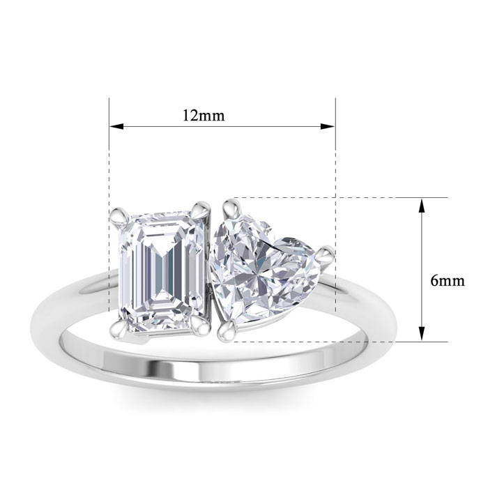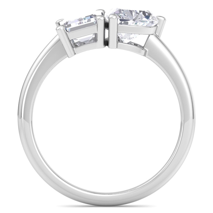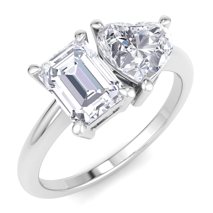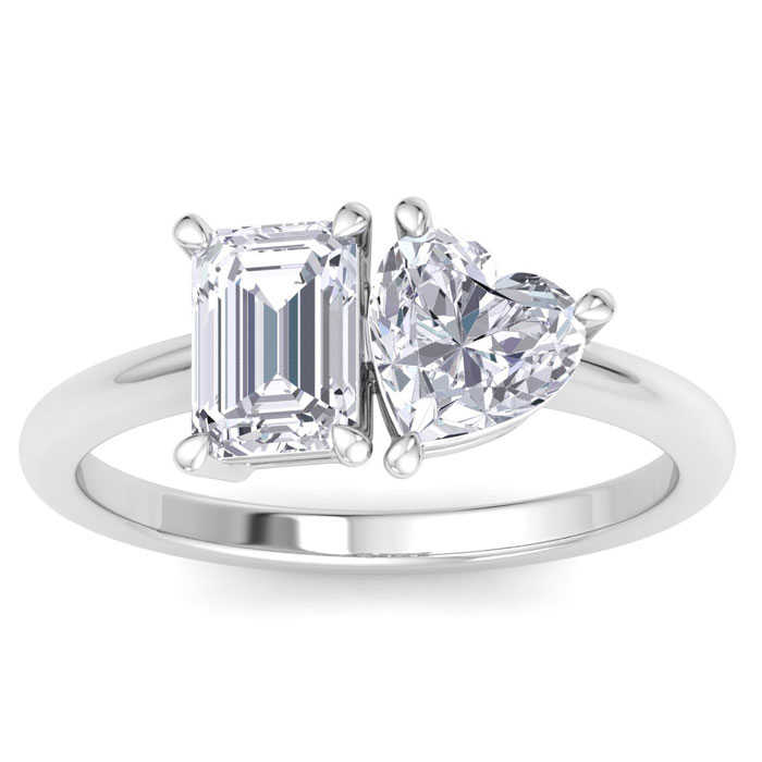2 Carat Lab Grown Diamond Two Stone Engagement Ring, Emerald-Heart, In 14K White Gold