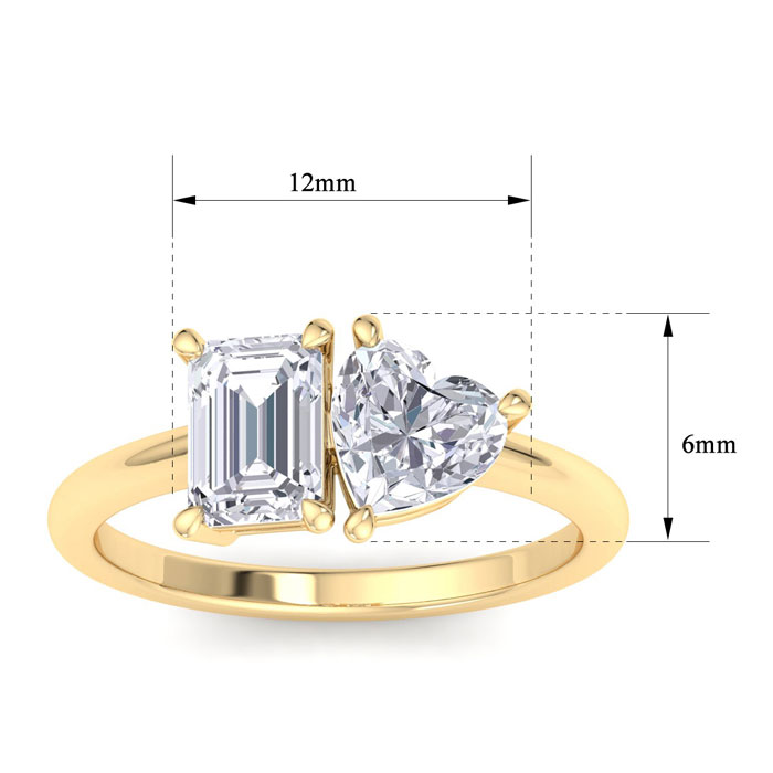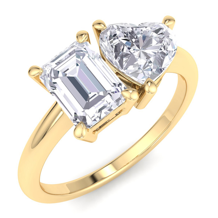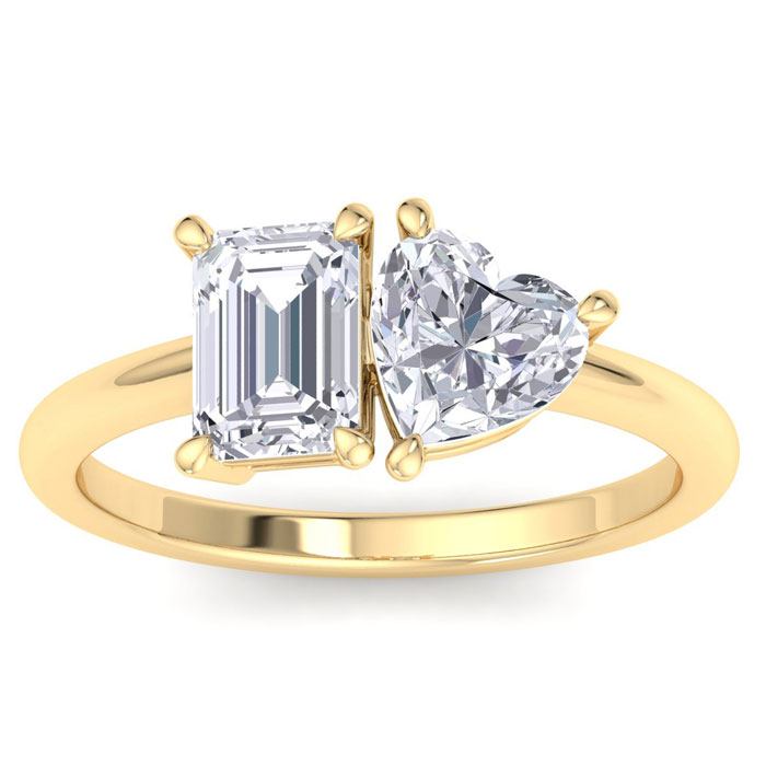 2 Carat Lab Grown Diamond Two Stone Engagement Ring, Emerald-Heart, In 14K Yellow Gold
