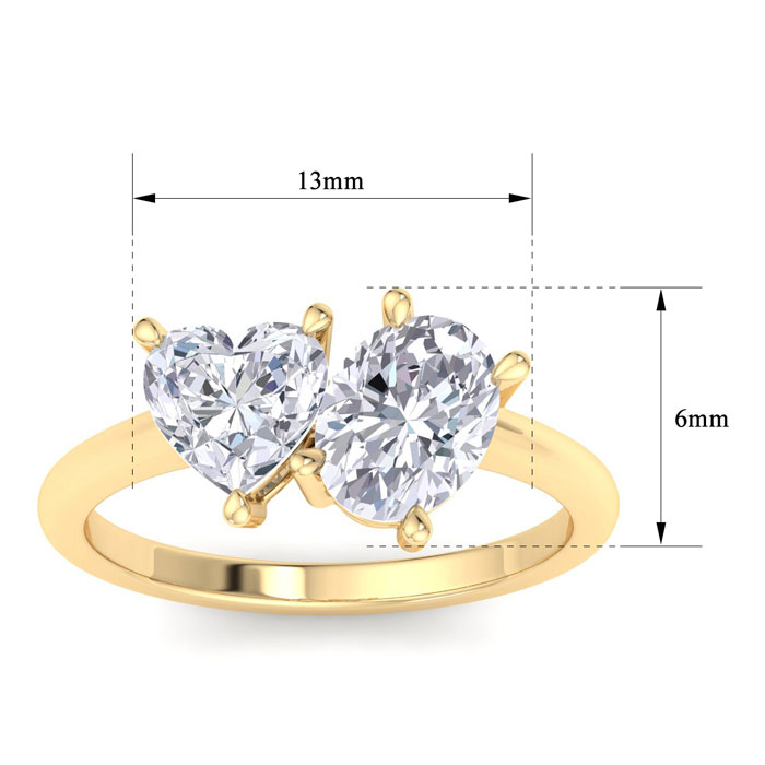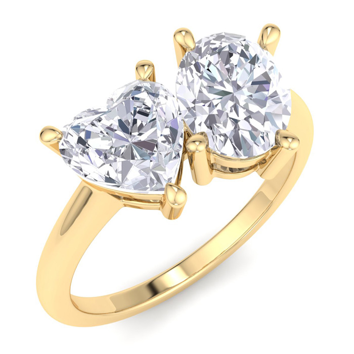 2 Carat Lab Grown Diamond Two Stone Engagement Ring, Heart-Oval, In 14K Yellow Gold