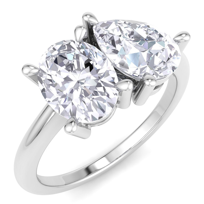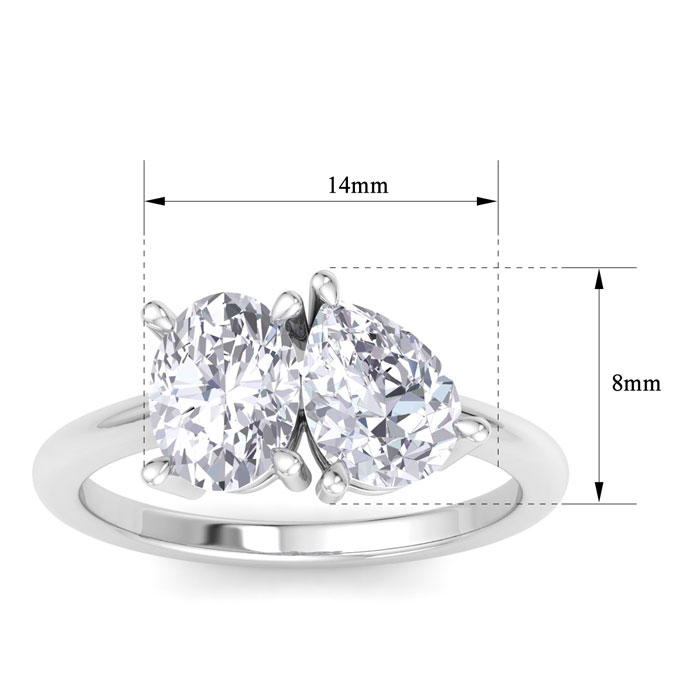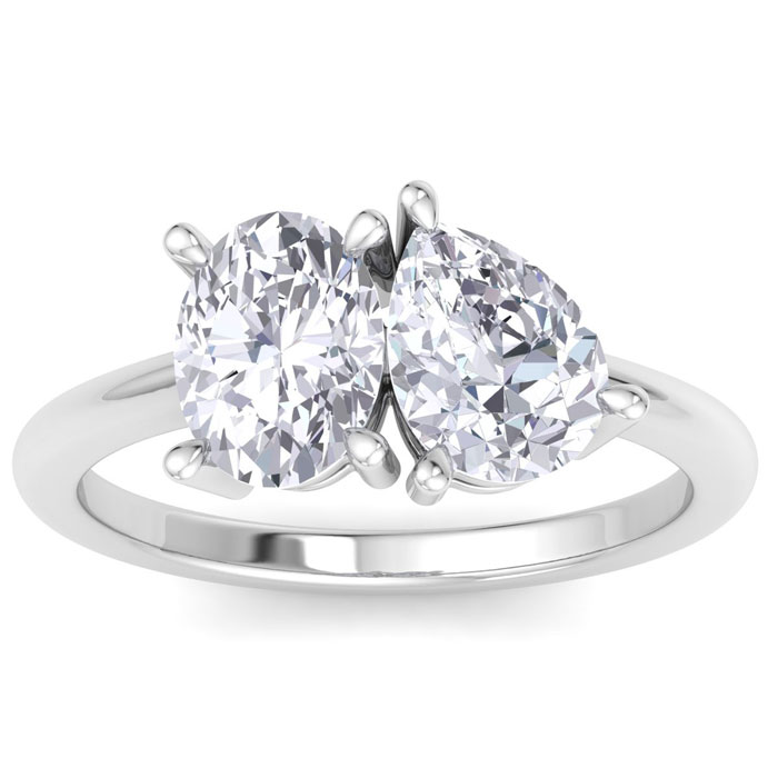 2 Carat Lab Grown Diamond Two Stone Engagement Ring, Oval-Pear, In 14K White Gold