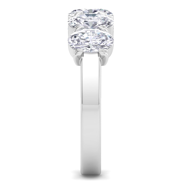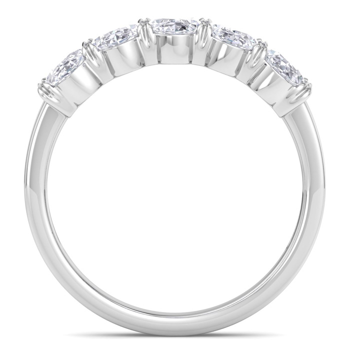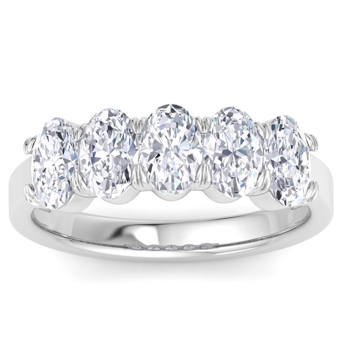 This lab grown diamond engagement ring features five oval shape lab grown diamonds in G-H color, VS clarity. Total carat weight is approximately 2 carats. This ring is in 14 karat white gold.