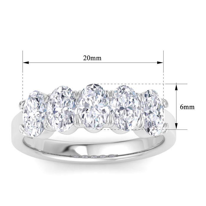 2 Carat Oval Shape Lab Grown Diamond Five Stone Engagement Ring In 14K White Gold