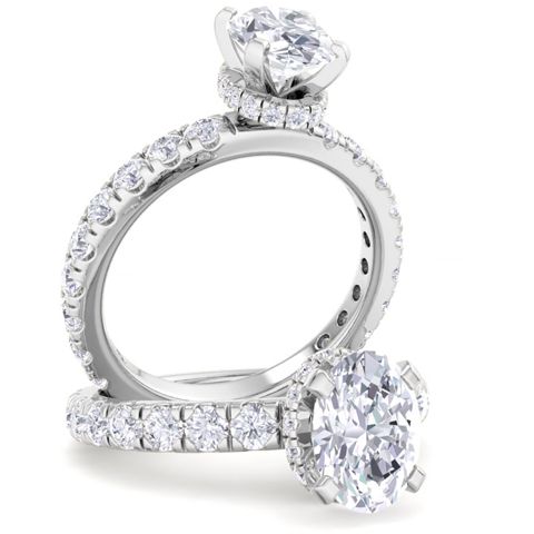 2 Carat Oval Shape Lab Grown Diamond Hidden Halo Engagement Ring In 14K White Gold