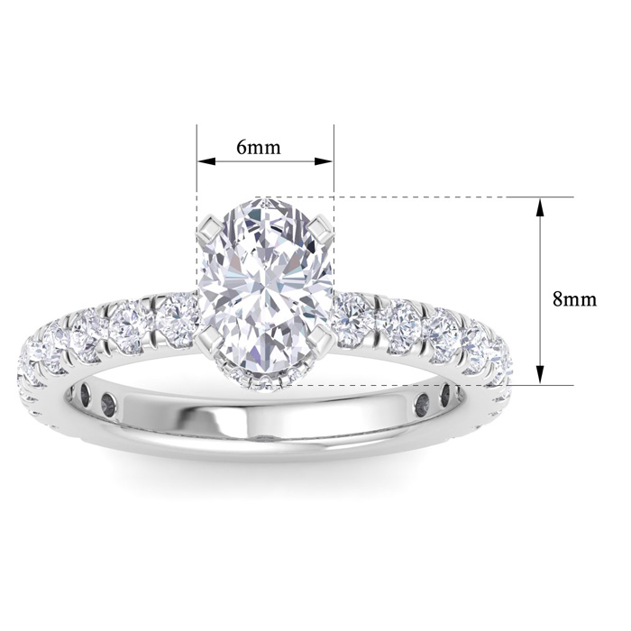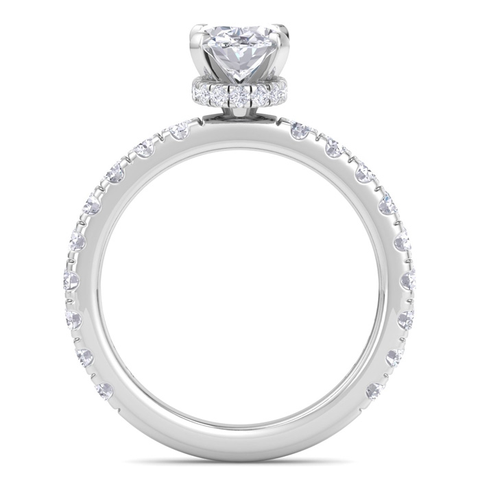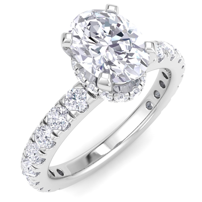 2 Carat Oval Shape Lab Grown Diamond Hidden Halo Engagement Ring In 14K White Gold