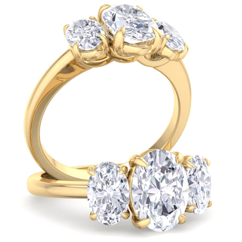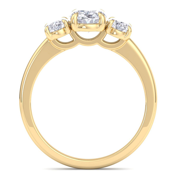 2 Carat Oval Shape Lab Grown Diamond Three Stone Engagement Ring In 14K Yellow Gold