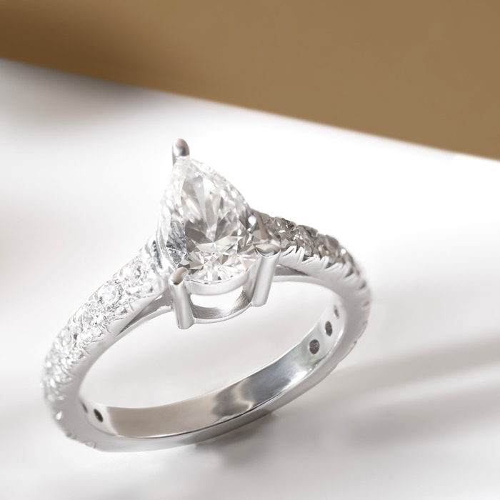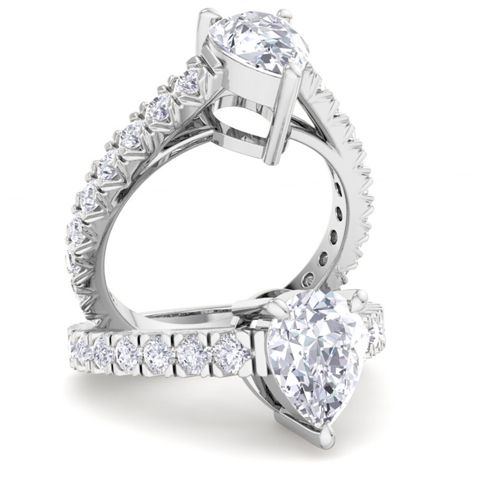 2 Carat Pear Shape Lab Grown Diamond Classic Engagement Ring In 14K White Gold