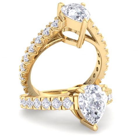 2 Carat Pear Shape Lab Grown Diamond Classic Engagement Ring In 14K Yellow Gold