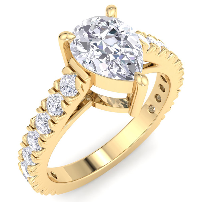 2 Carat Pear Shape Lab Grown Diamond Classic Engagement Ring In 14K Yellow Gold