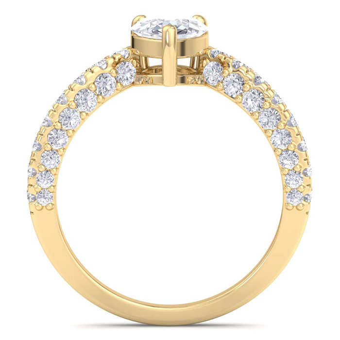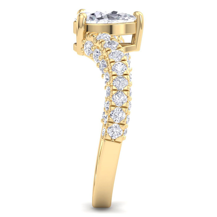 2 Carat Pear Shape Lab Grown Diamond Curved Engagement Ring In 14K Yellow Gold