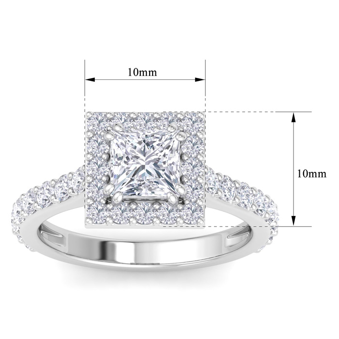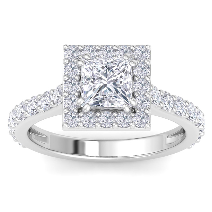 2 Carat Princess Cut Lab Grown Diamond Halo Engagement Ring In 14K White Gold