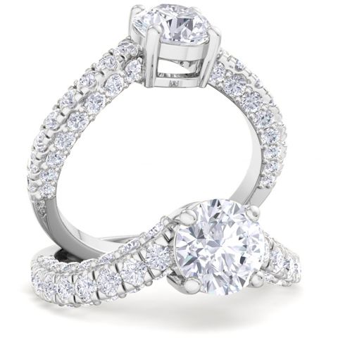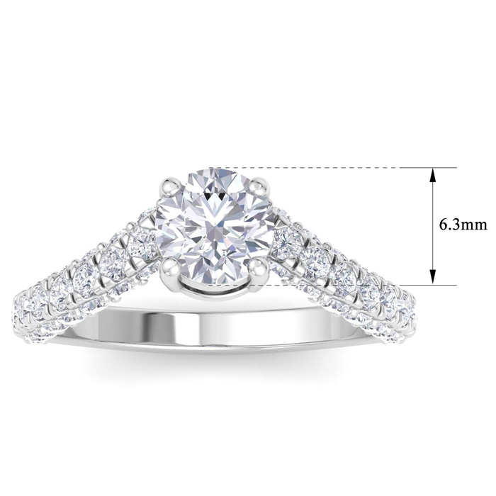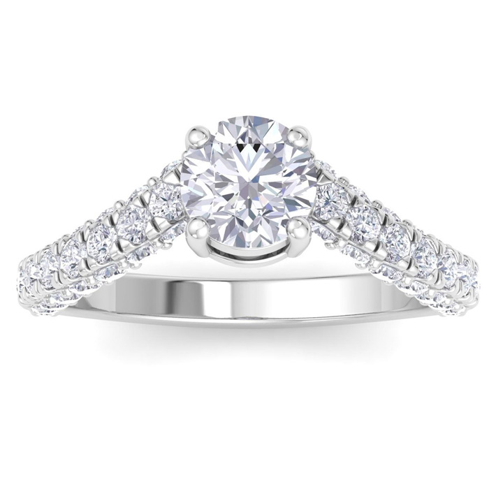 2 Carat Round Lab Grown Diamond Curved Engagement Ring In 14K White Gold