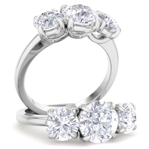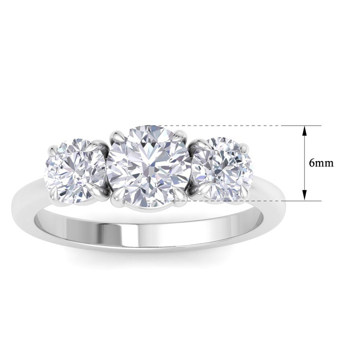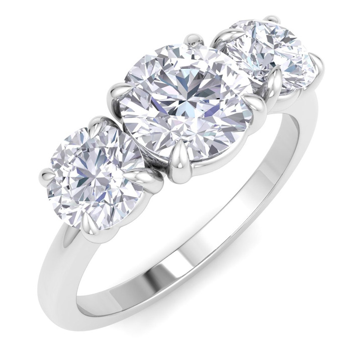 2 Carat Round Lab Grown Diamond Three Stone Engagement Ring In 14K White Gold