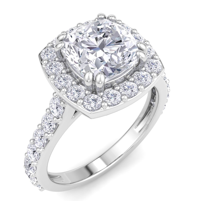 3 Carat Cushion Cut Lab Grown Diamond Halo Engagement Ring In 14K White Gold