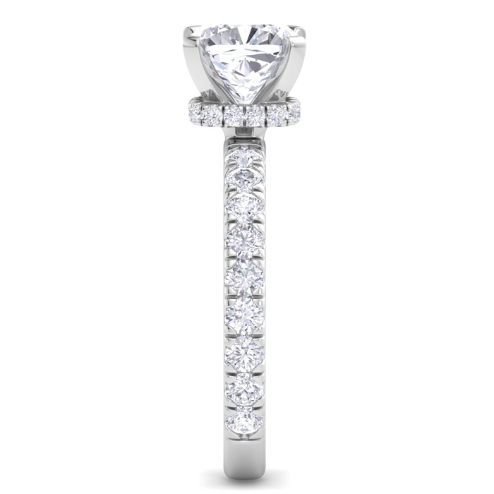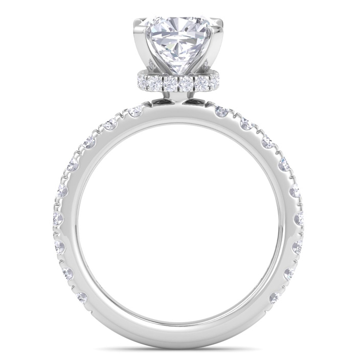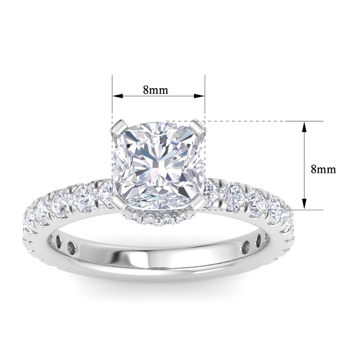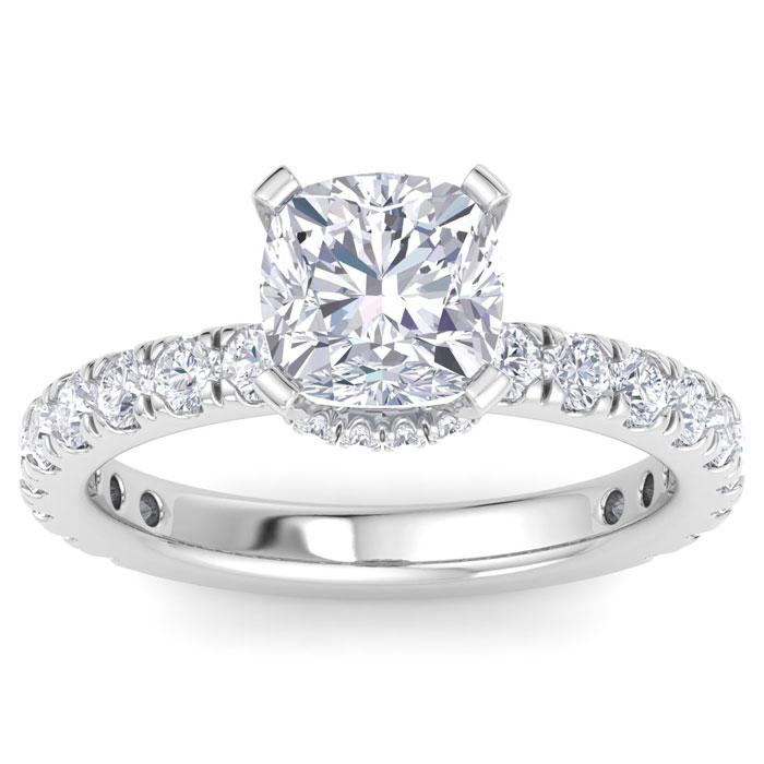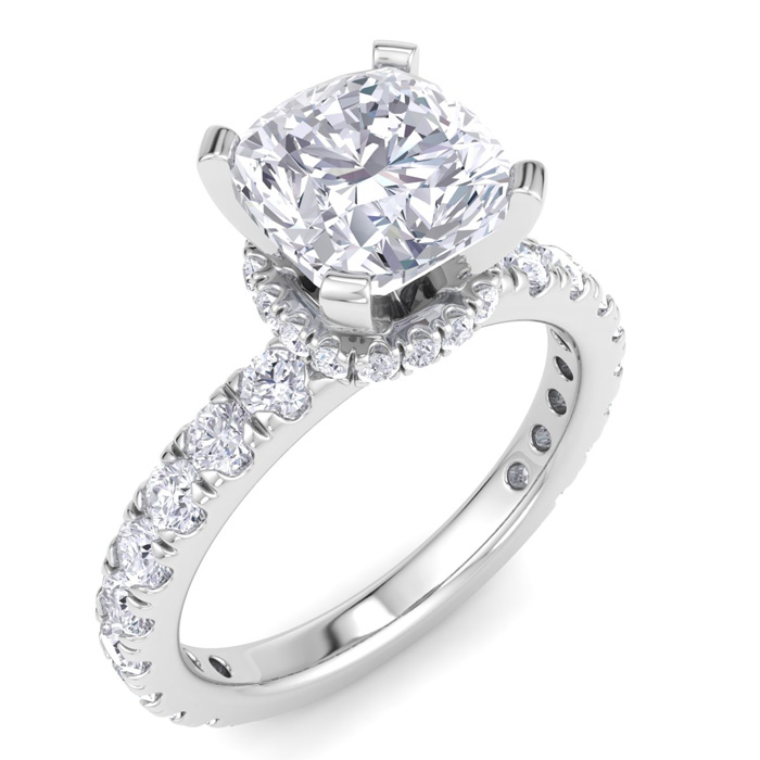 3 Carat Cushion Cut Lab Grown Diamond Hidden Halo Engagement Ring In 14K White Gold