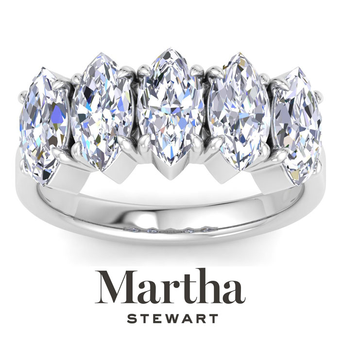 Showcasing class, style and timeless sophistication, the Martha Stewart fine jewelry collection is here to be celebrated. This Martha Stewart lab grown diamond engagement ring features 5 marquise shape lab grown diamonds in G-H color, VS clarity. Total carat weight is approximately 3 carats. This ring is in 14 karat white gold. This Martha Stewart ring is comfort fit for a luxurious feel on your finger. Whether for a special occasion or to add a touch of elegance to everyday wear, this ring is sure to become a beloved heirloom. Martha Stewart’s dedication to quality and attention to detail are reflected in every piece, making this collection a celebration of timeless beauty and exceptional craftsmanship.