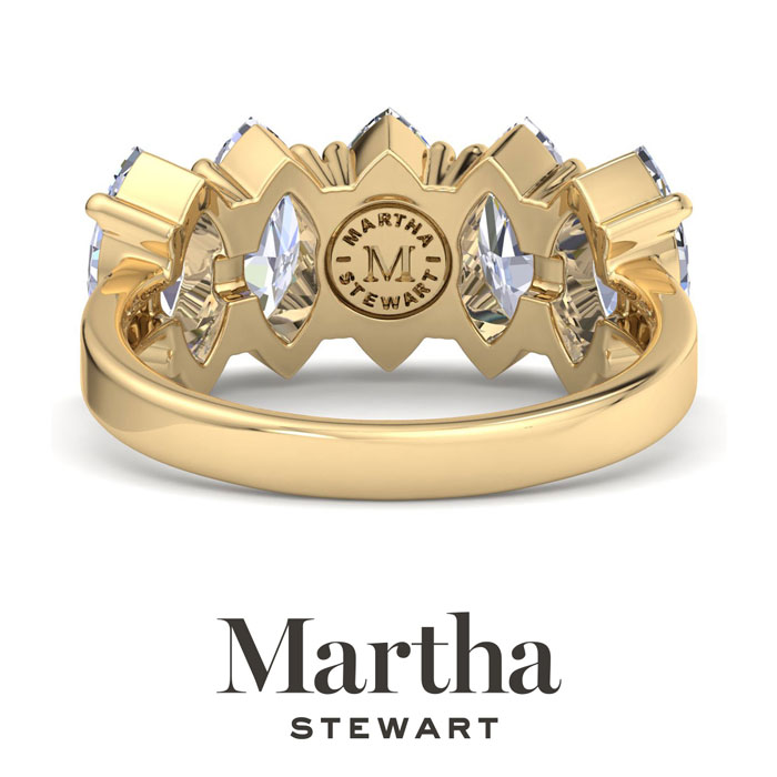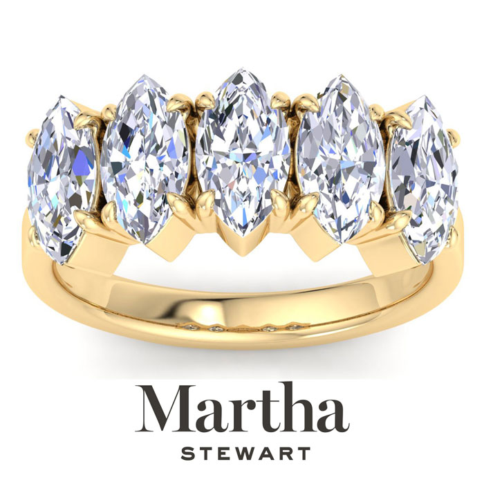 Showcasing class, style and timeless sophistication, the Martha Stewart fine jewelry collection is here to be celebrated. This Martha Stewart lab grown diamond engagement ring features 5 marquise shape lab grown diamonds in G-H color, VS clarity. Total carat weight is approximately 3 carats. This ring is in 14 karat yellow gold. This Martha Stewart ring is comfort fit for a luxurious feel on your finger. Whether for a special occasion or to add a touch of elegance to everyday wear, this ring is sure to become a beloved heirloom. Martha Stewart’s dedication to quality and attention to detail are reflected in every piece, making this collection a celebration of timeless beauty and exceptional craftsmanship.