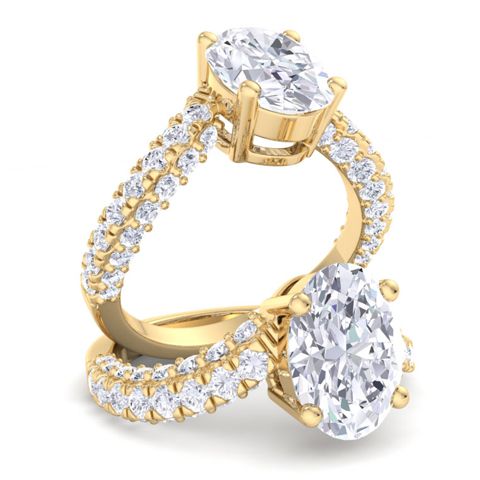 3 Carat Oval Shape Lab Grown Diamond Curved Engagement Ring In 14K Yellow Gold