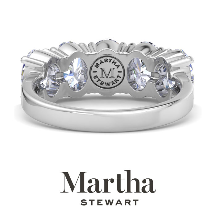 Showcasing class, style and timeless sophistication, the Martha Stewart fine jewelry collection is here to be celebrated. This Martha Stewart lab grown diamond engagement ring features 5 oval shape lab grown diamonds in G-H color, VS clarity. Total carat weight is approximately 3 carats. This ring is in Sterling Silver. This Martha Stewart ring is comfort fit for a luxurious feel on your finger. Whether for a special occasion or to add a touch of elegance to everyday wear, this ring is sure to become a beloved heirloom. Martha Stewart’s dedication to quality and attention to detail are reflected in every piece, making this collection a celebration of timeless beauty and exceptional craftsmanship.