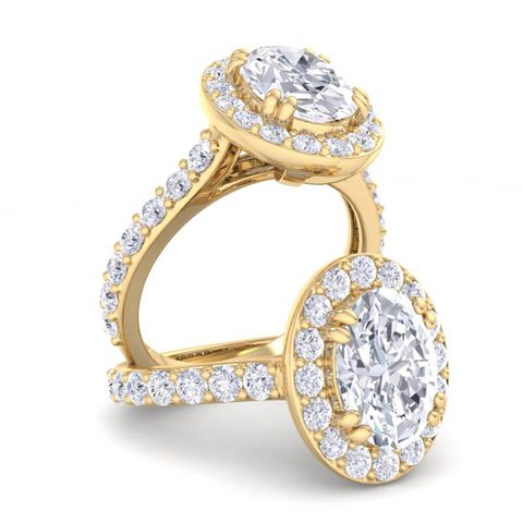 3 Carat Oval Shape Lab Grown Diamond Halo Engagement Ring In 14K Yellow Gold