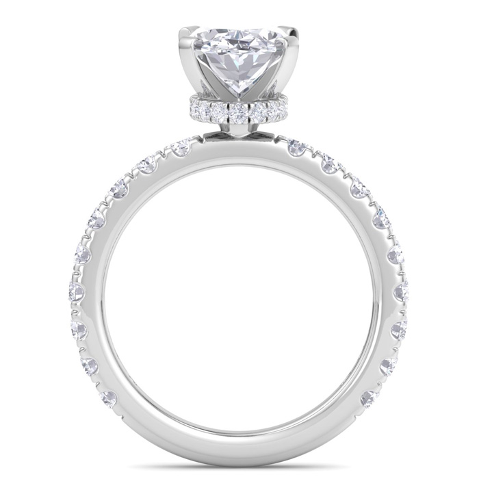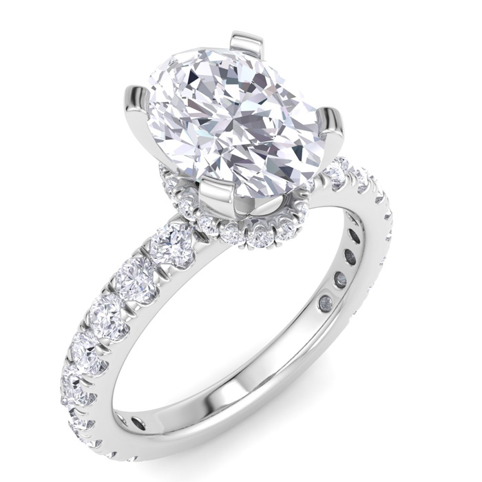 3 Carat Oval Shape Lab Grown Diamond Hidden Halo Engagement Ring In 14K White Gold