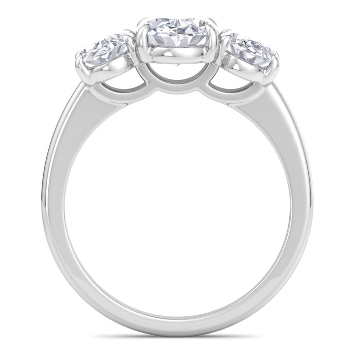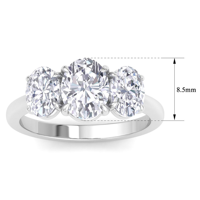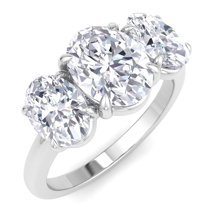 3 Carat Oval Shape Lab Grown Diamond Three Stone Engagement Ring In 14K White Gold